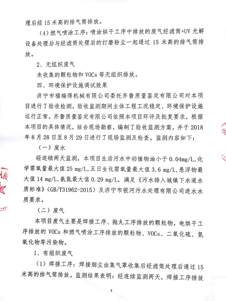 濟寧市福瑞得機械有限公司年產2600臺小型機械及12000噸機械配件加工項目(廢氣、廢水)竣