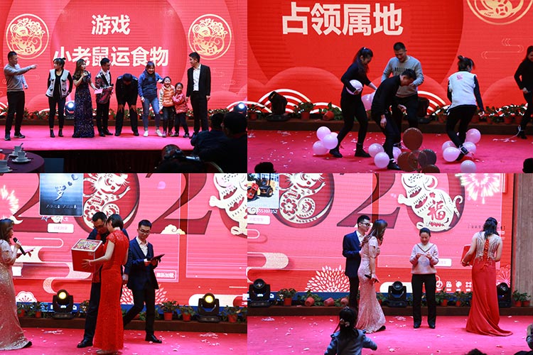 四、游戲、抽取獎品環節展示。年會當然少不了游戲、抽取大獎環節了,精心安排的互動游戲,大大地調動了員工們的熱情,臺下一片歡聲笑語,昔日的汗水都化為杯中的美酒,大家舉杯共飲。抽取大獎是激動人心的,看著拿大獎的同事心中充滿了羨慕。