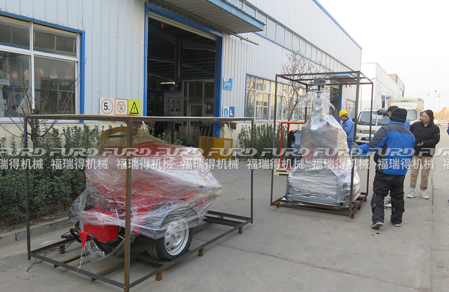 福瑞得機械1臺灌縫機,1臺移動燈車,一臺馬路吹風機打包裝柜出口新加坡