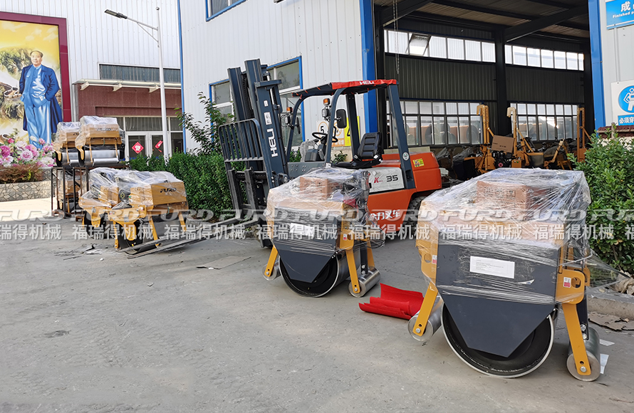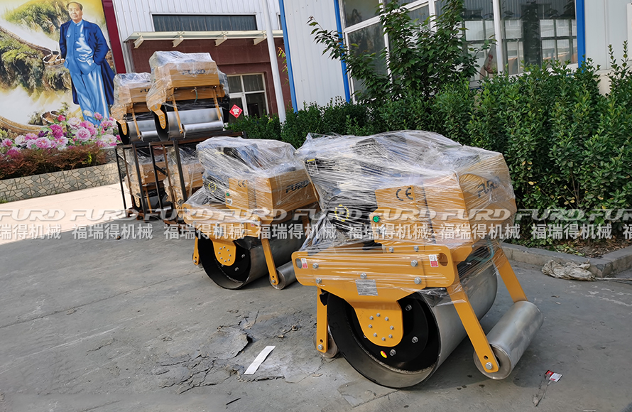 福瑞得機(jī)械8臺(tái)手扶單鋼輪壓路機(jī)打包發(fā)往青島