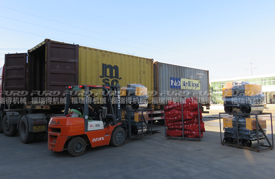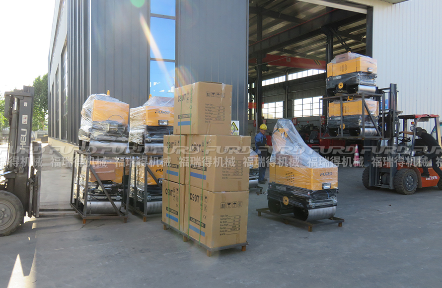 福瑞得機械12臺手扶雙鋼輪壓路機打包裝柜出口澳大利亞
