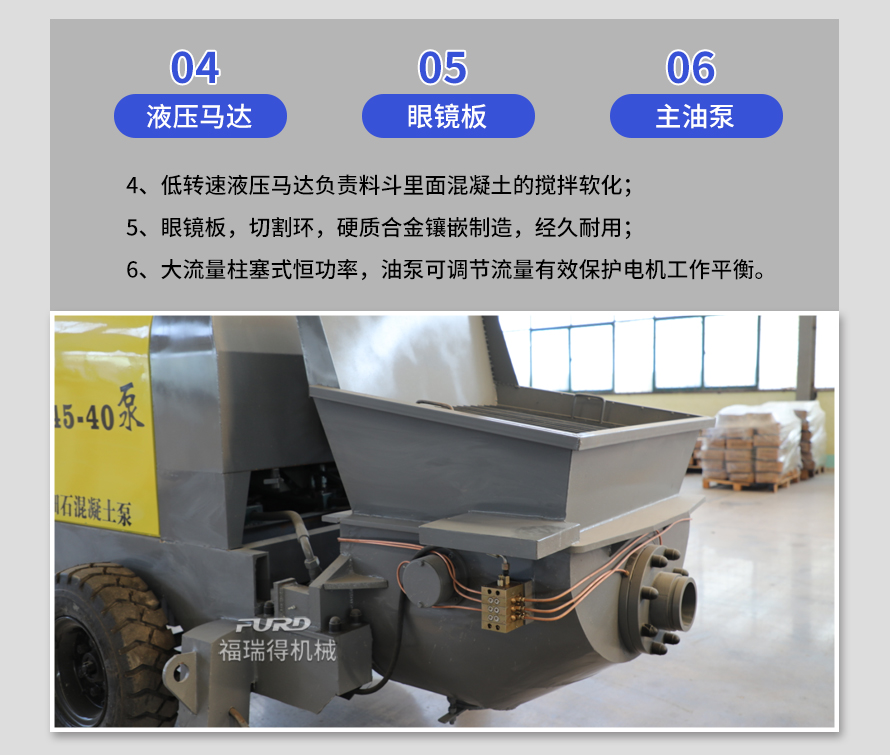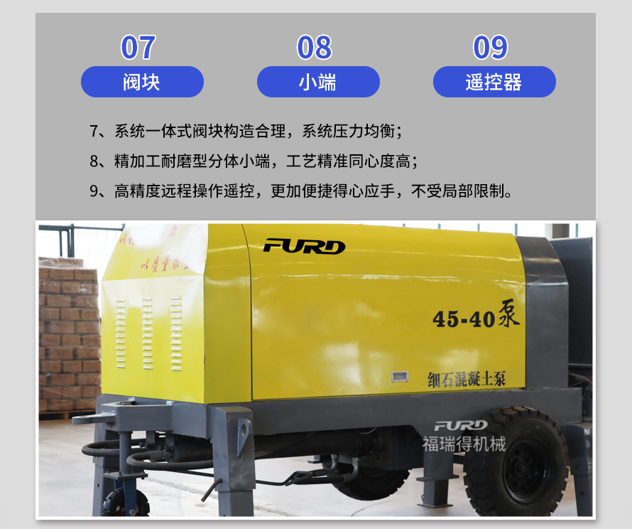 產品介紹: 1,大流量 采用加粗料缸,讓機械每一次循環出料多20% 2,效率高 移動便捷全部采用快接式管道卡,提高工作效率 3,便捷 本機可遠程遙控,操作不受地點限制,更加人性化 產品用途: 坡道灌漿,水平地面,隧道澆筑,模