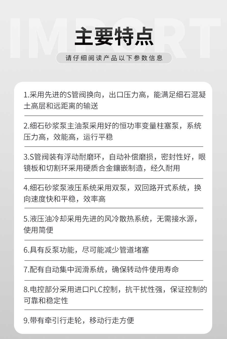 25型二次構造柱專用輸送泵是一種復合泵送要求的混凝土泵,通過水平或垂直安裝的管道,連續輸送到澆注現場的細石混凝土輸送設備。 廣泛應用于二次構造柱填充、地暖工程、屋面、高層建筑的墻、水庫、水電站、港口、碼頭、基礎處理 軟弱地基 加固注漿 隧