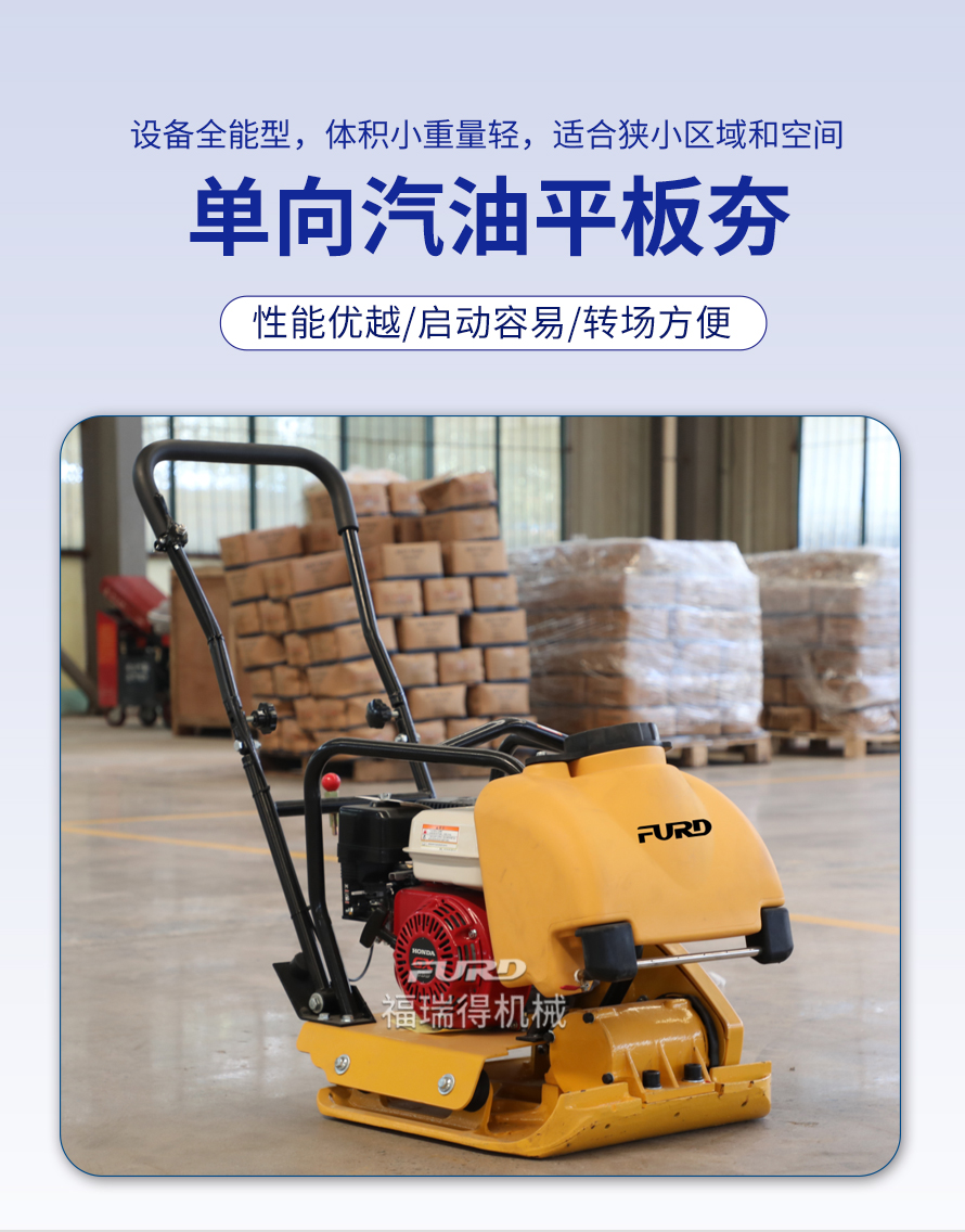 適用于路基邊緣、橋涵、管道、溝槽底部等狹長地帶的壓實。 本田汽油動力,名牌品質(zhì)保證。