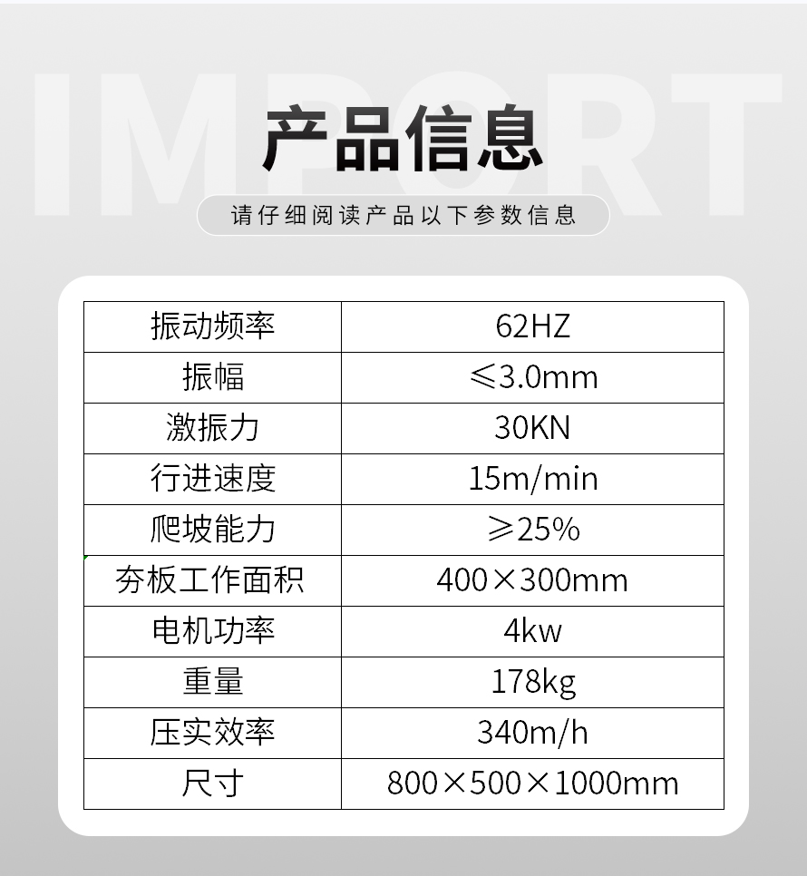 可廣泛應用于市政工程、建筑工程以及提防工程等地面振搗和回填土地基的夯實工作。