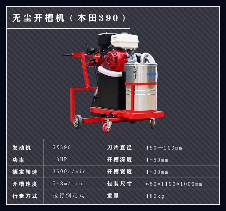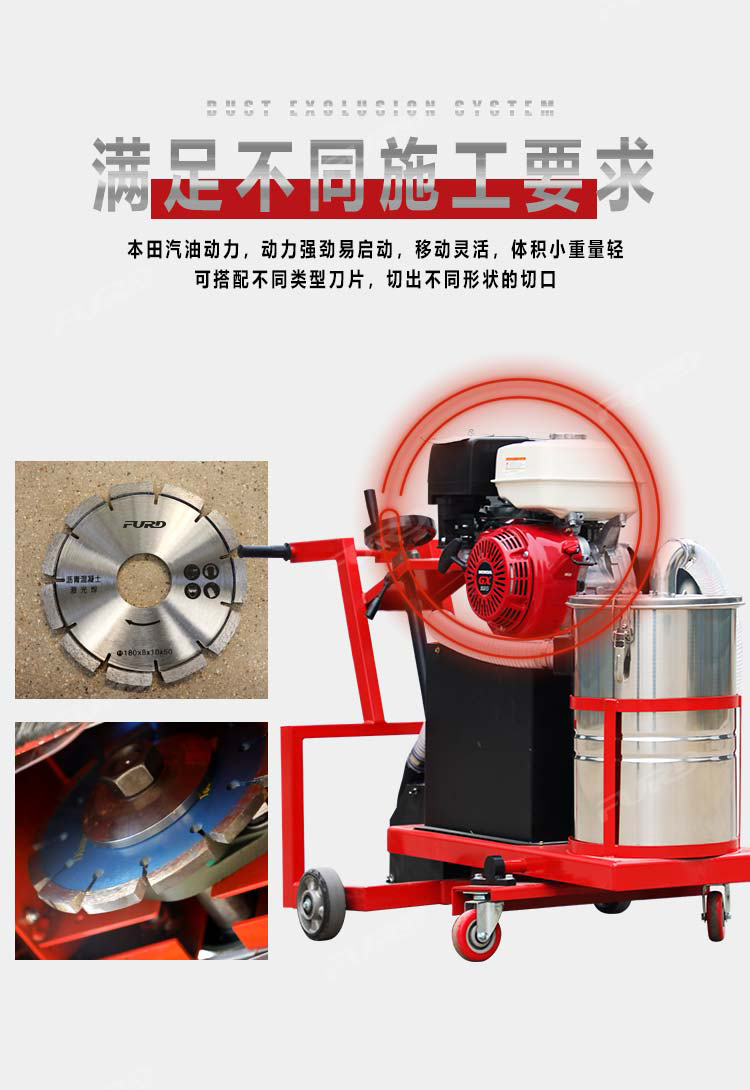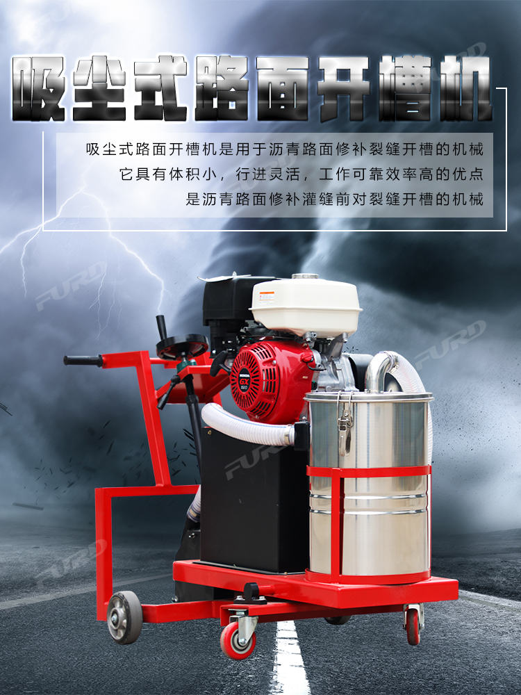 路面無塵開槽機是主要用于瀝青路面修補裂縫開槽的機械,其集吸塵、開槽為一體,環保性.