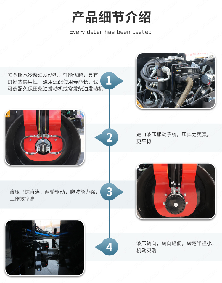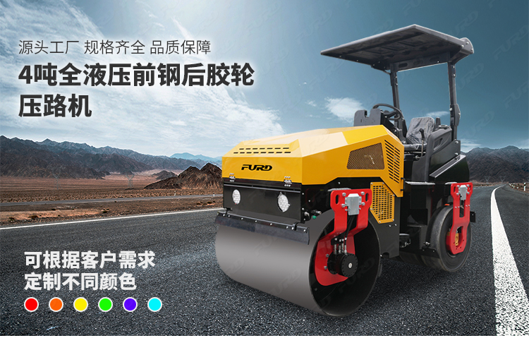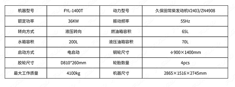 FYL-1400T為橡膠輪胎振動壓路機,該壓路機前有鋼輪,后有橡膠輪,結合鋼輪和輪胎壓路機的優點,具有更高的工作效率。
