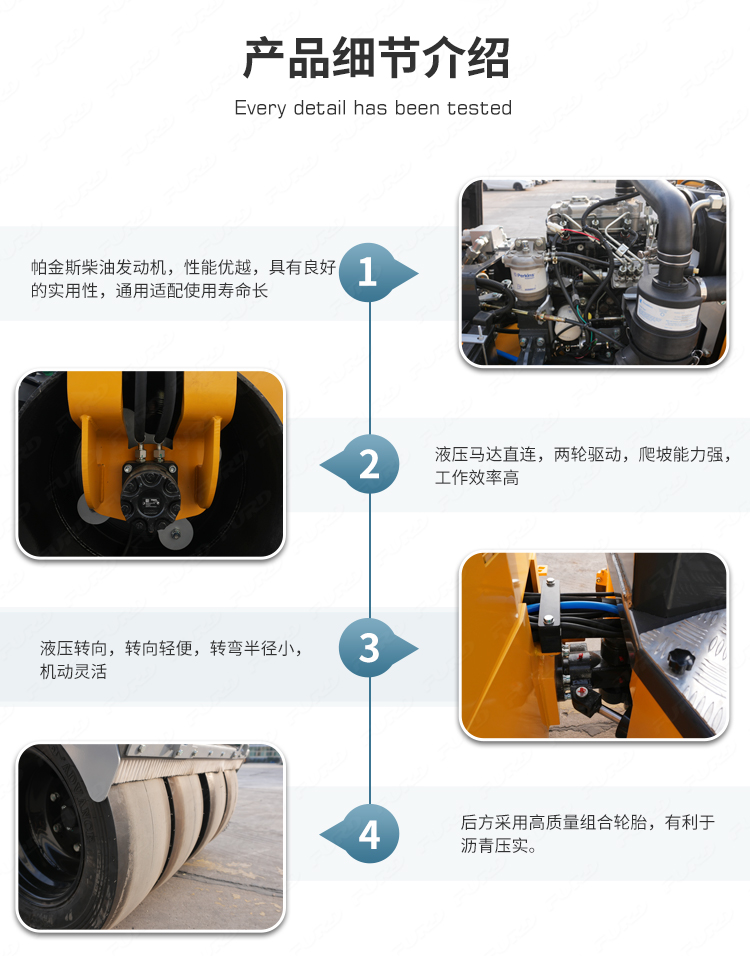 FYL-900T為橡膠輪胎振動壓路機,該壓路機前有鋼輪,后有橡膠輪,結合鋼輪和輪胎壓路機的優點,具有更高的工作效率。