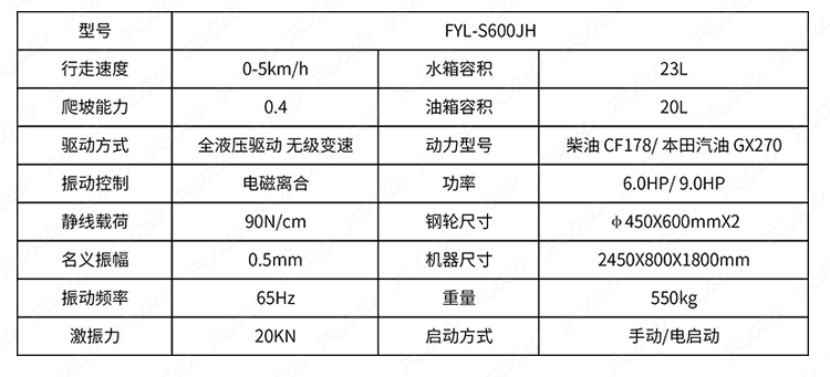 FYL-S600JH 手扶靜液壓雙鋼輪振動壓路機