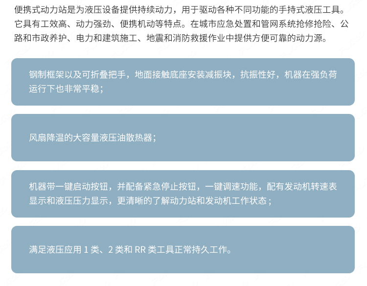 適用于路面搶修、道路施工、市政維護、保養、園林等工作場景 ;.設備安裝便捷,搬運簡便,適應性強,可輕松解決破碎、切削、分裂、打樁、壓實等施工項目。